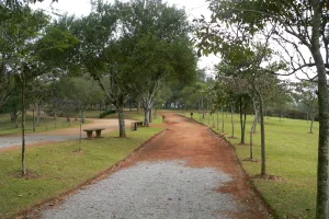 Para os esportistas, a infraestrutura é igualmente completa: o parque conta com quadras poliesportivas, campos de futebol, pista de skate e ciclovia bem estruturada. Já os amantes do contato direto com a natureza podem aproveitar as trilhas ecológicas e áreas de descanso ao ar livre.